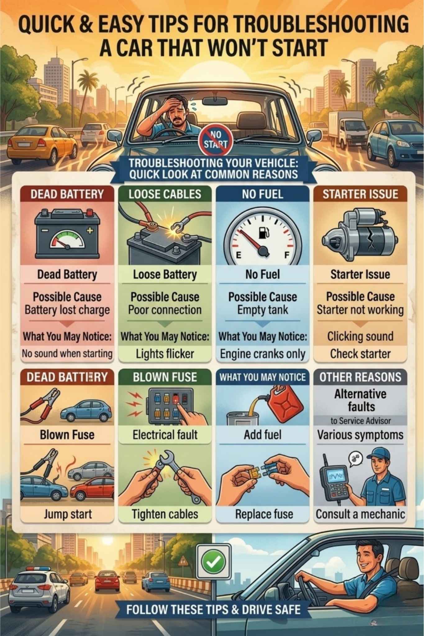 This happens in morning before work, while leaving a parking lot or even during trips. And this makes lot of people assume that something wrong has occur in their car. But that not the truth many times. Yes you read it right, a car may fail to start because of several simple issues such as battery problems, loose connections, fuel issues, or other small electrical faults.